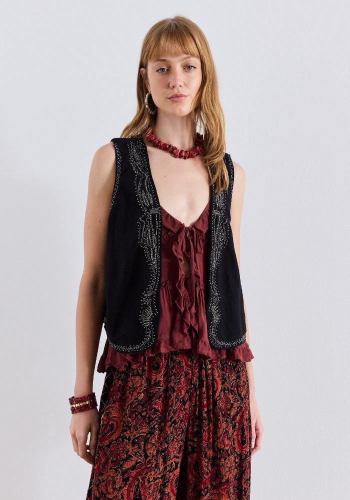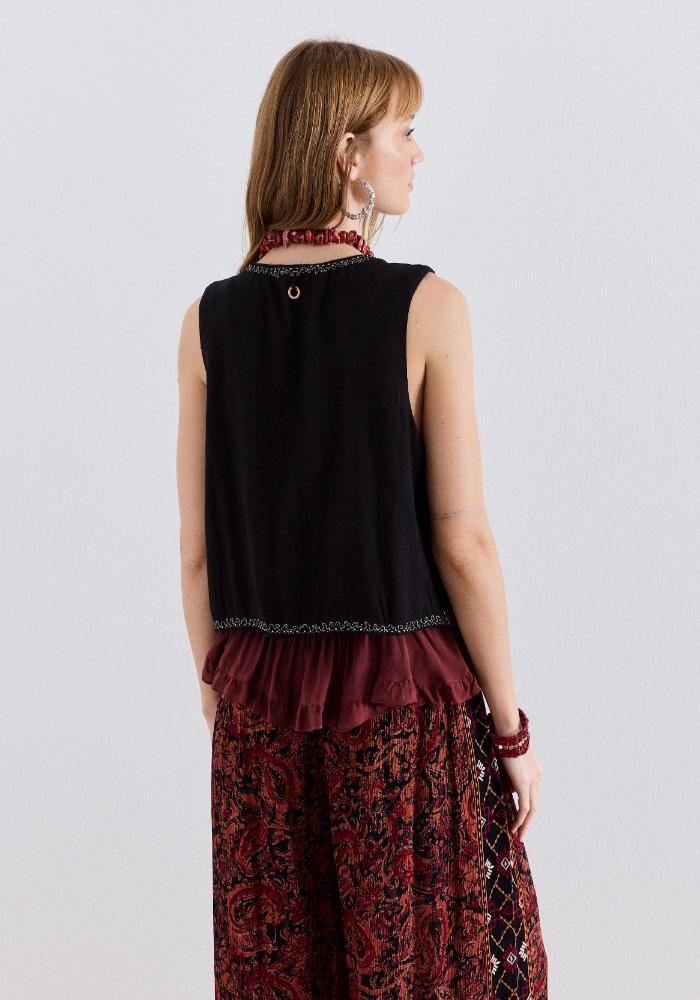 Blusa tipo gillet con bordados Blusa tipo gillet con bordados Negro XS