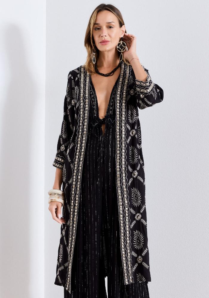 Chaqueta Tipo Kimono Bordada Chaqueta Tipo Kimono Bordada Negro S