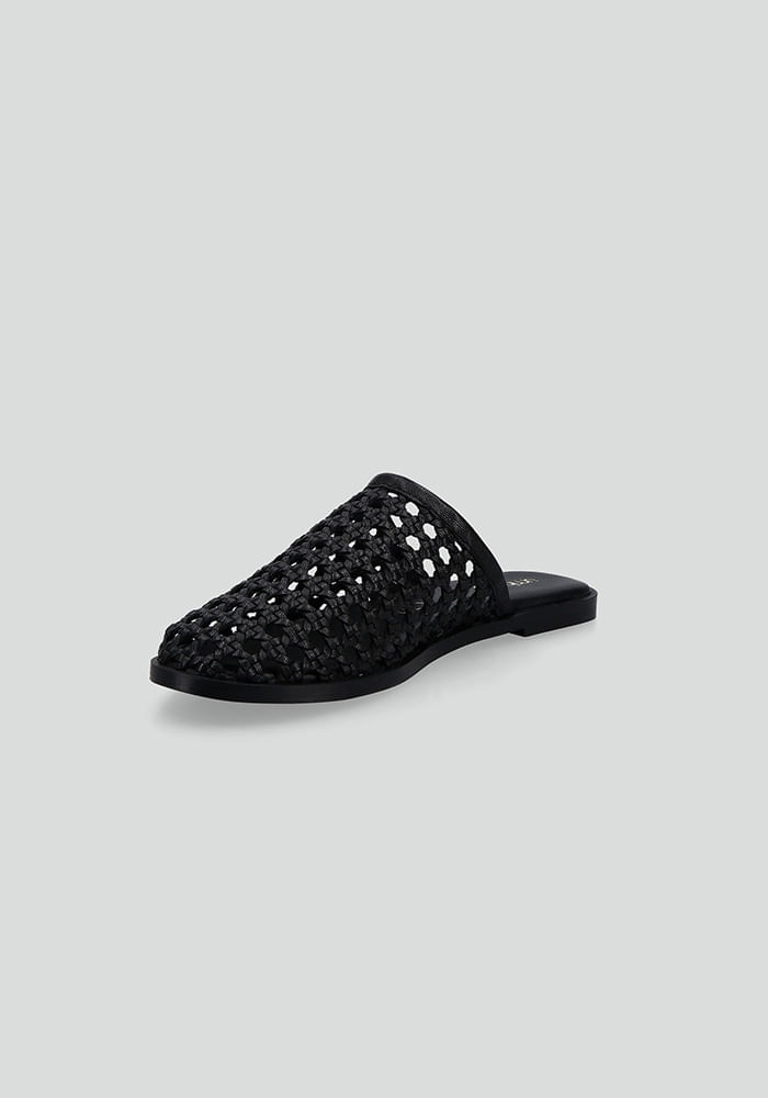 Zueco Plano con Trama Tejida Cuero Mujer Zueco Plano con Trama Tejida Cuero Mujer Negro 36