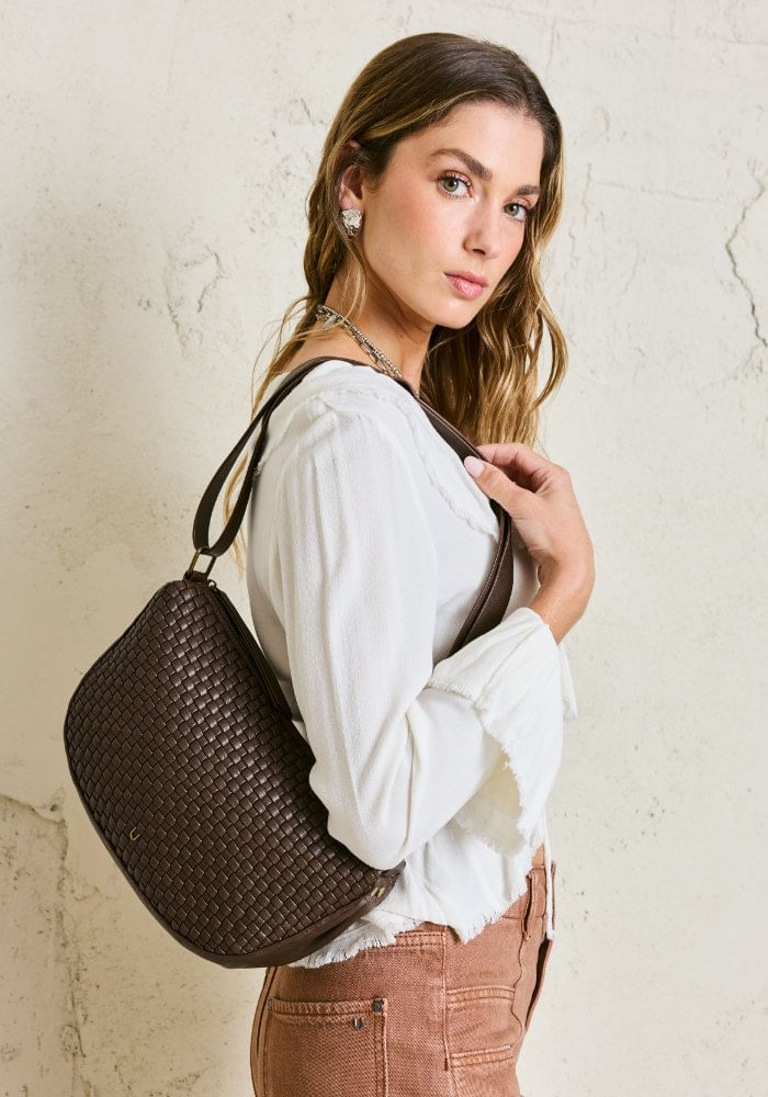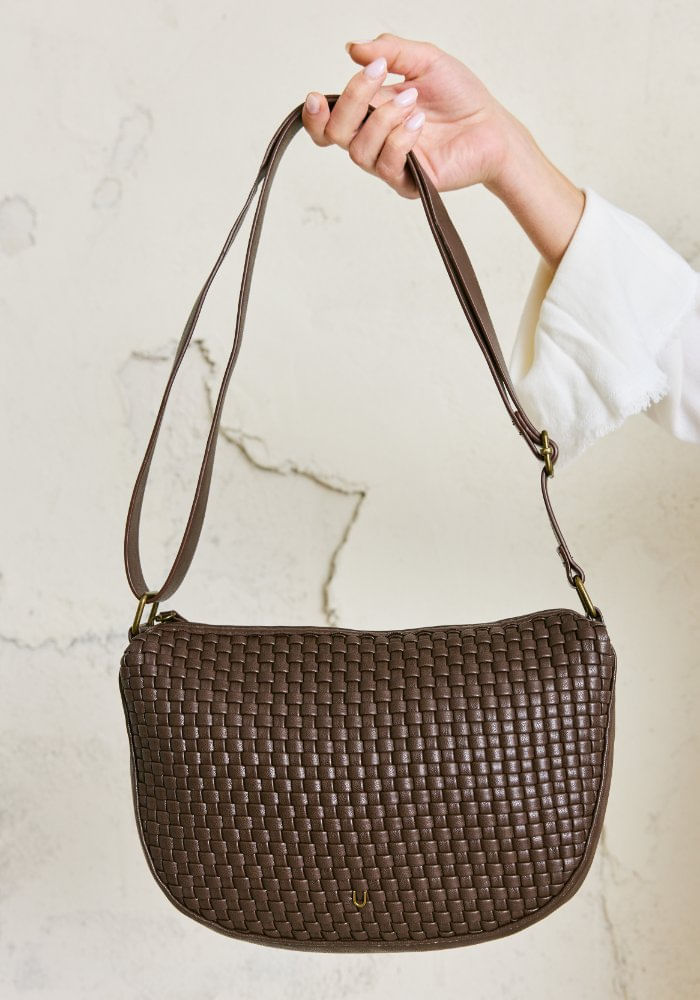 Cartera de Hombro Cruzada con Diseño Entramado Cartera de Hombro Cruzada con Diseño Entramado Café U