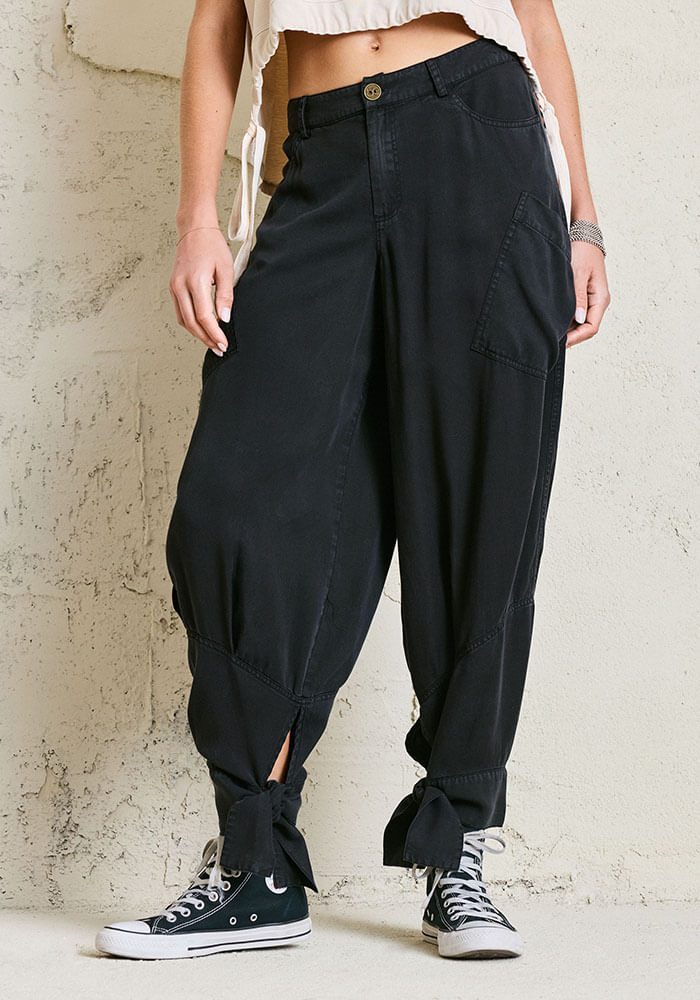 Pantalón jogger look fluido con bolsillos Pantalón jogger look fluido con bolsillos Negro S