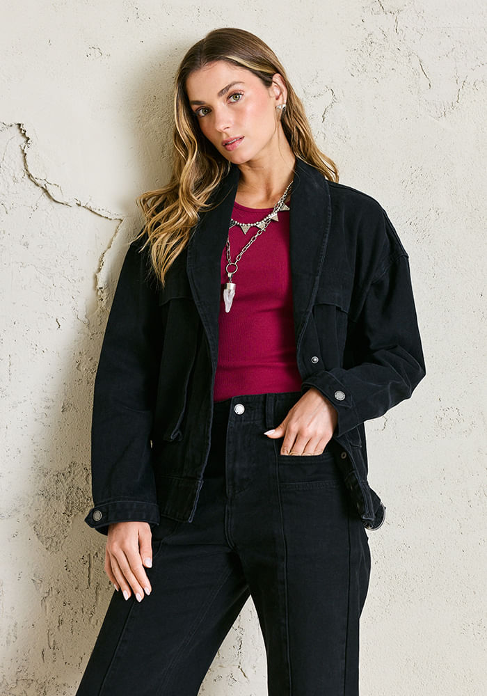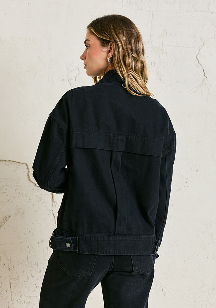 Chaqueta pliegues y bolsillos look desgastado Chaqueta pliegues y bolsillos look desgastado Negro M