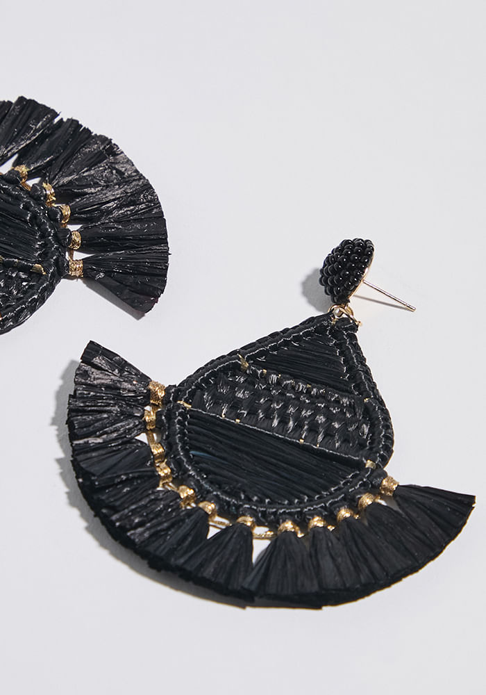 Aros de raffia y mostacillas Aros de raffia y mostacillas Negro TU