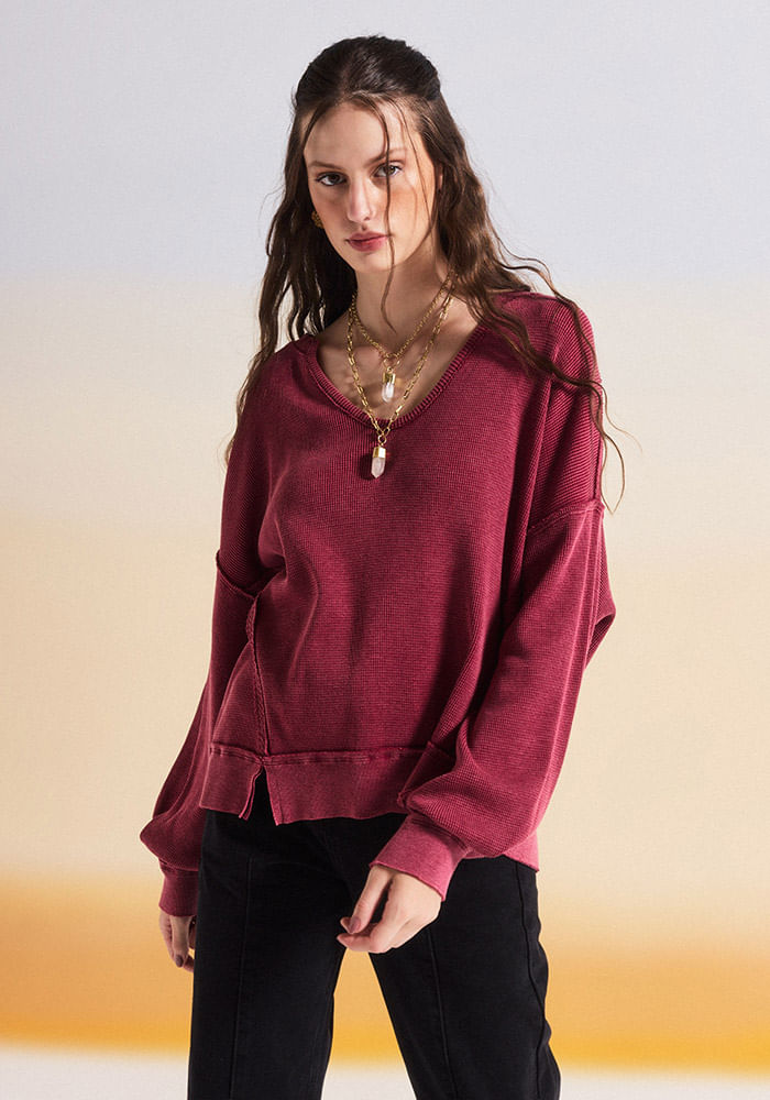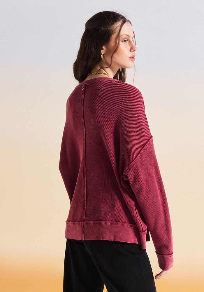 Sweater Waffle de Manga Larga Relajado Sweater Waffle de Manga Larga Relajado Rojo S