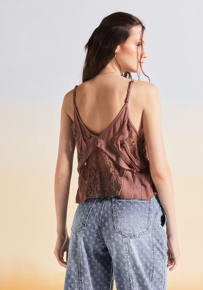 Blusa Look Seda con Capas y Encaje Blusa Look Seda con Capas y Encaje Café XL