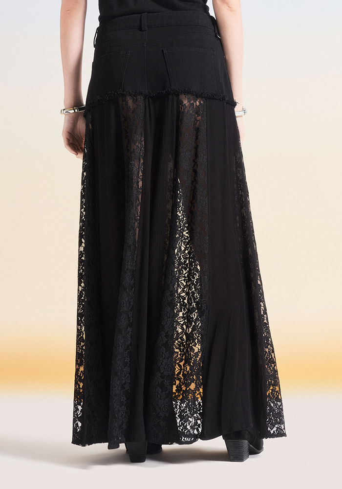 Falda Maxi Festival con Encaje y Denim Falda Maxi Festival con Encaje y Denim XS