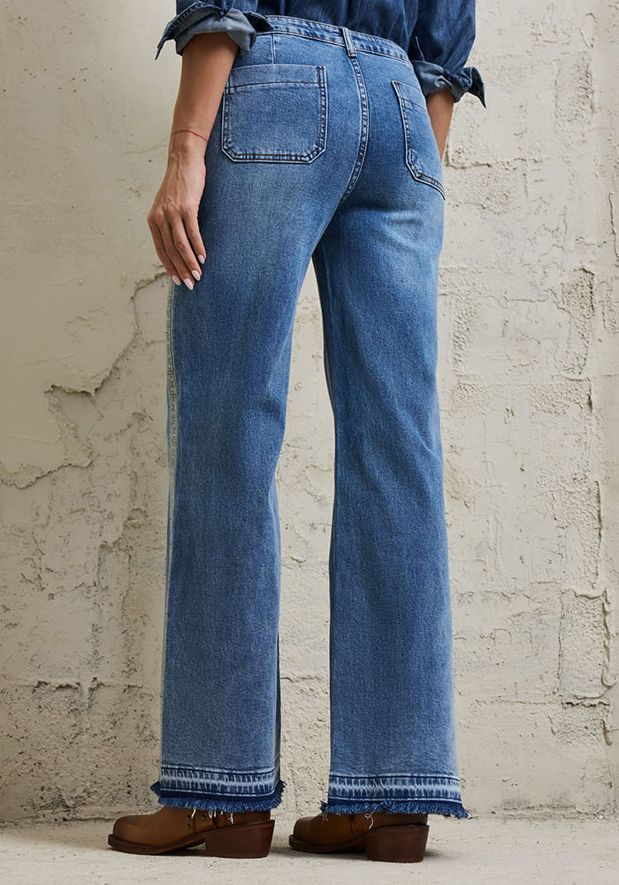 Pantalón Bordado punto cruz y basta deshilachada. Pantalón Bordado punto cruz y basta deshilachada. Azul 44