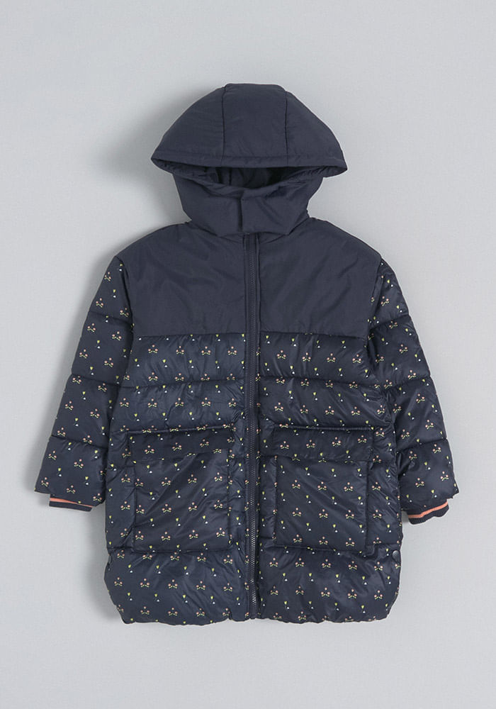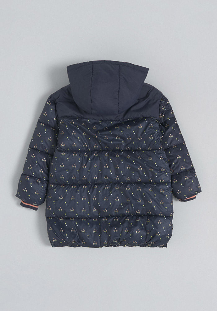 Parka Larga Estampada Y Con Capucha Parka Larga Estampada Y Con Capucha 3 Azul Oscuro