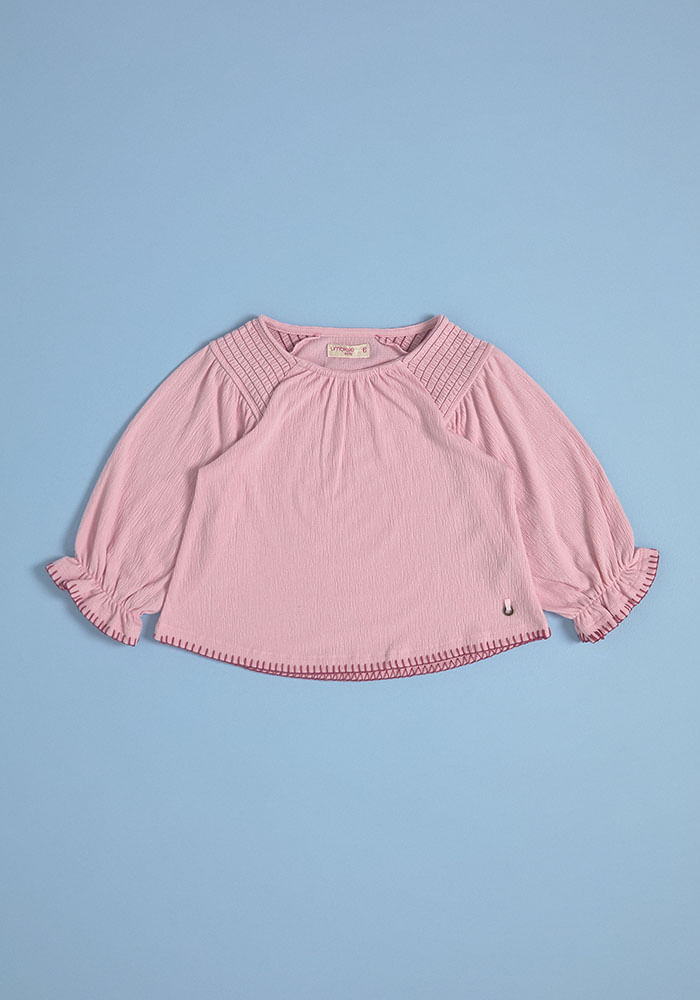 KidsPoleras y BlusasPolera crepé con panal e abeja y costuras a contraste