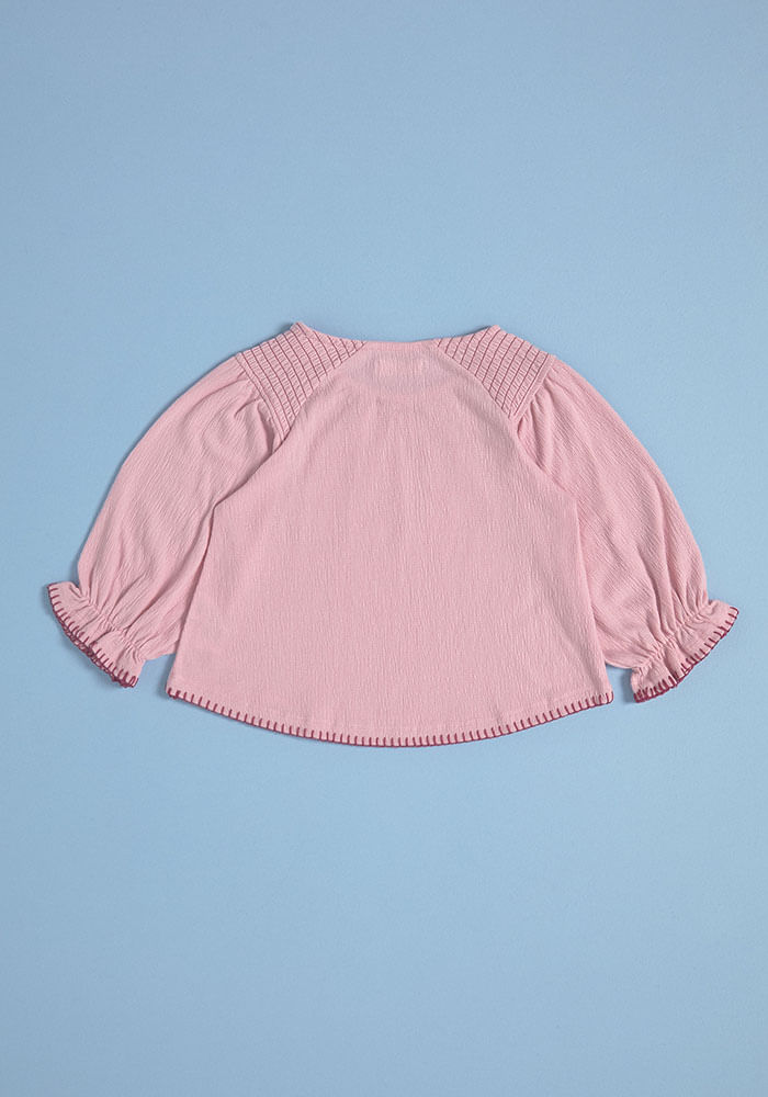Polera crepé con panal e abeja y costuras a contraste Polera crepé con panal e abeja y costuras a contraste Rosado Claro 2 6A