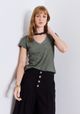 Polera Detalle de Desflecado en Escote y Manga